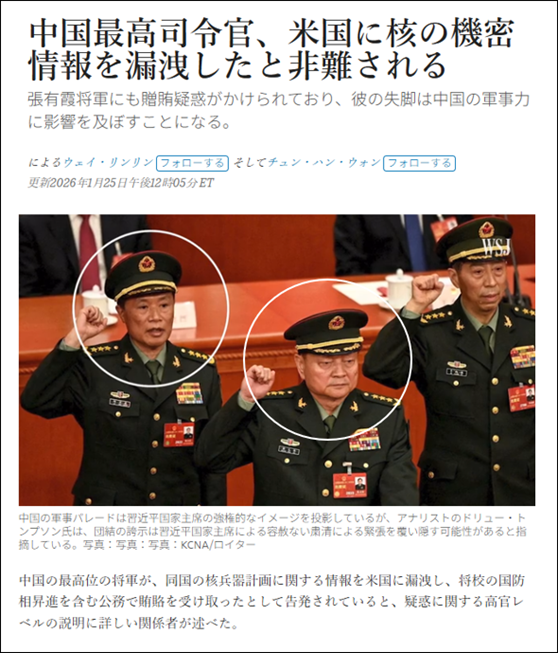 <2026年1月25日 ウォール・ストリート・ジャーナル 張又侠氏(真ん中)と劉振立氏(左)>