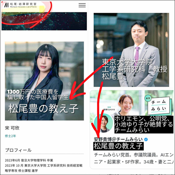 「チームみらい」の代表である安野氏は、こうした数々の疑惑が指摘される松尾教授の研究室出身だ。