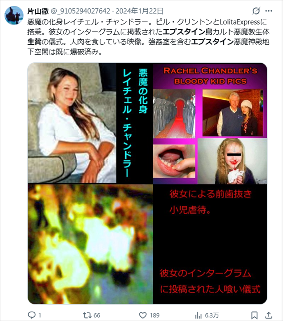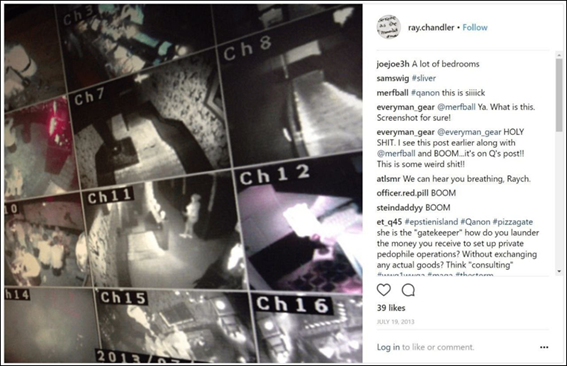 <レイチェル・チャンドラーがSNSに投降したエプスタイン島の寺院の地下の監視カメラの映像。拷問するシーンや生贄にされた子供を食べているショッキングなシーンが映っている>