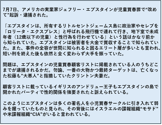 <2019年7月12日「大量逮捕が始まった? ~エプスタイン事件~」>