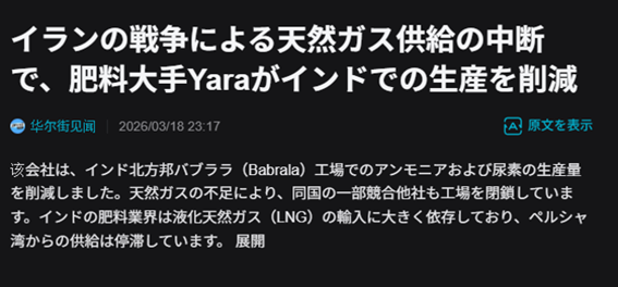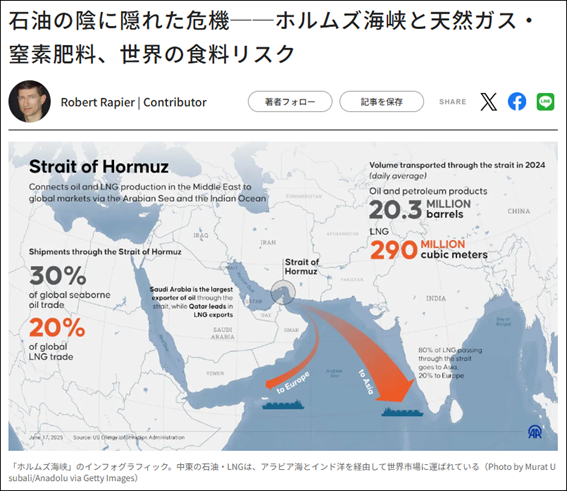 ホルムズ海峡の実質的封鎖によるエネルギー危機に隠れて進行しているのが、世界の食糧生産に不可欠な「肥料危機」だ。