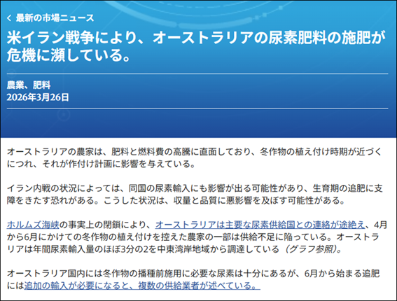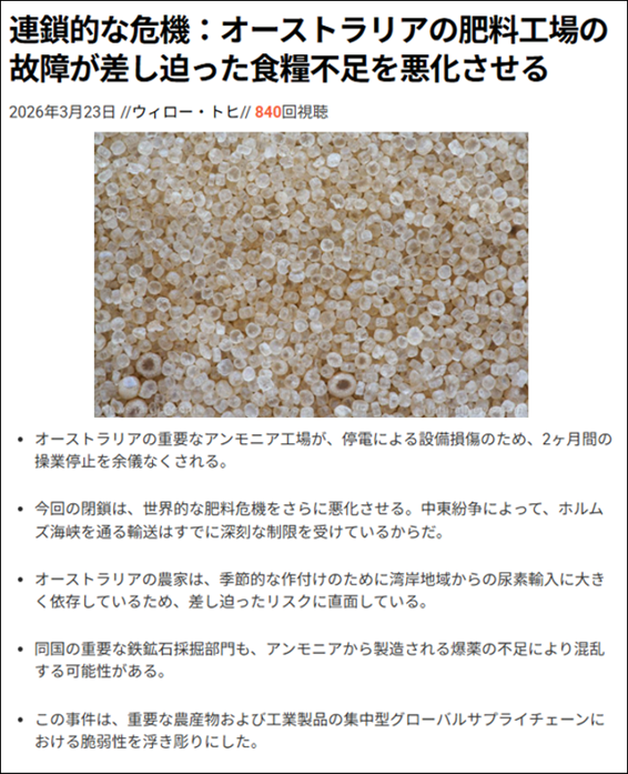 特にオーストラリアでは、国内最大のアンモニア生産施設の予期せぬ損傷も重なり、肥料危機がさらに深刻化している。