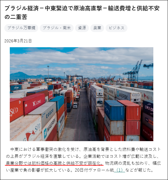 <2026年3月21日 ブラジル日報>