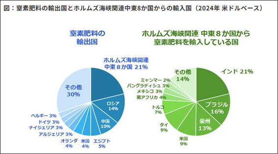 世界の食料生産の根幹を支える窒素肥料は、天然ガスを原料として生産されており、世界貿易量の21%がサウジアラビアやカタール等湾岸諸国で生産されている。