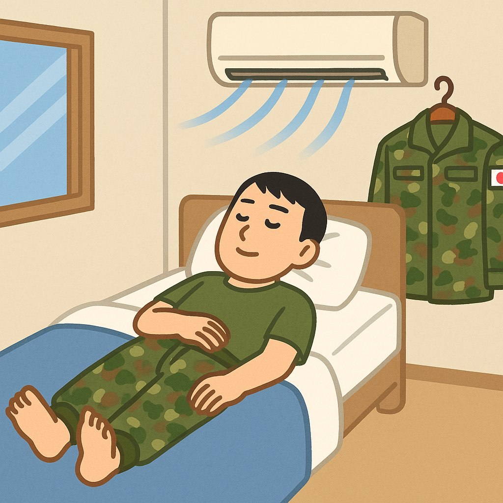 ある即応予備自衛官の方が宿泊に使う外来宿舎で、冷暖房が24時間利用できるようになったと喜んでいました。訓練後の疲れた体を休めるとき、快適な冷房の中でしっかり眠れるようになった――小さくても、とても大切な変化です。画像はイメージです。