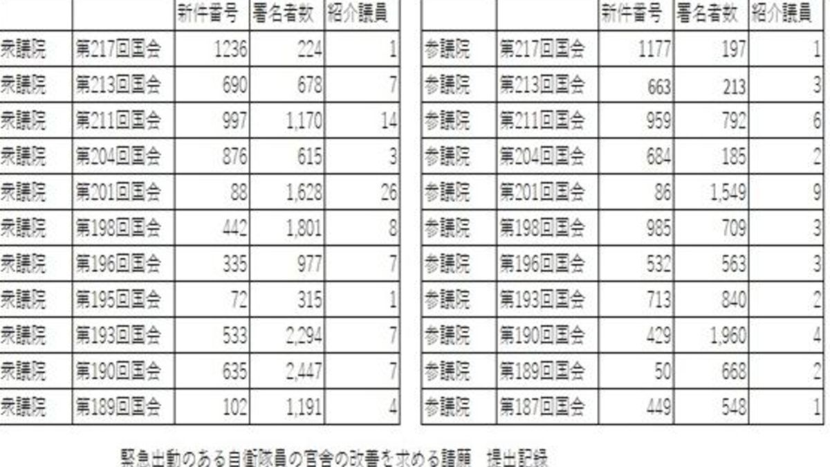 自衛官守る会は、国会請願という正式な制度を通じて、自衛隊員の生活環境改善を訴え続けてきた団体です。衆参両院の公式サイトで確認できる通り、緊急出動のある自衛隊員の官舎改善などを求める請願を、過去10年にわたり計22件提出してきました。