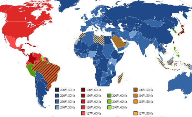 アメリカ、台湾はコンセントの形状が日本と同じA型なので精密機器以外のほとんどの家電製品はコンバーターなしでも動きますが電圧が110Vなので非推奨です。