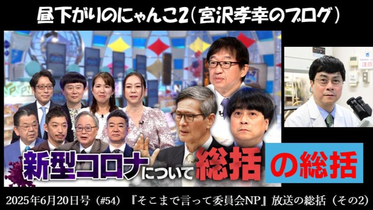 【告知】明日6月21日午後7時30分から、ニコニコチャンネル『宮沢孝幸チャンネル』で、新型コロナ対策の総括をテーマにライブ放送をします。今回のゲストは藤井聡先生(京都大学教授)と森田洋之先生(内科医、医療ジャーナリスト)です。 6月8日に放送された『そこまで言って委員会NP』を受けての議論になります。是非ご覧下さい。