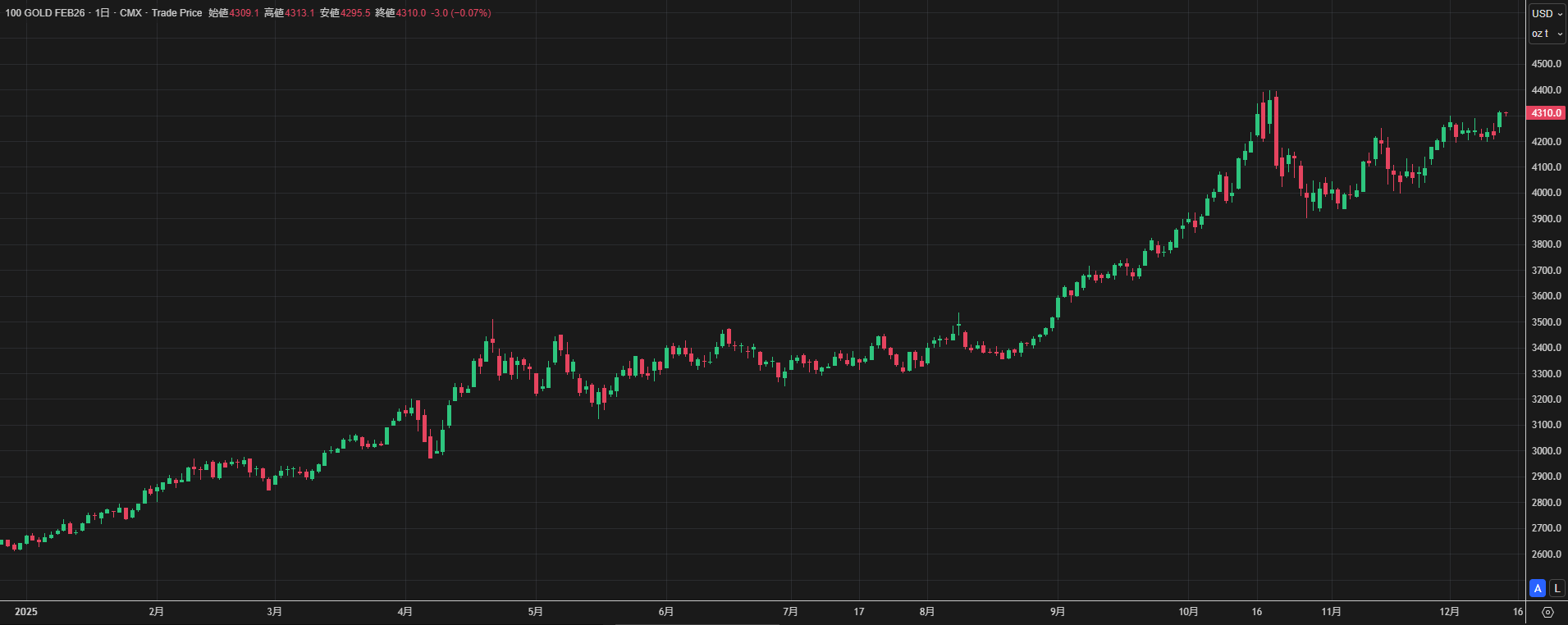 [【COMEX金先物相場(日足)】