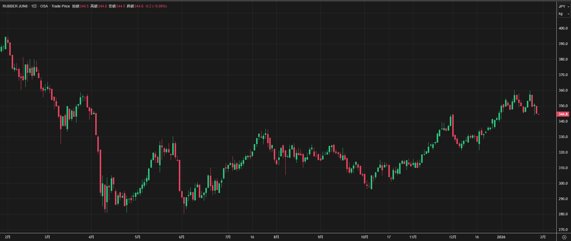 【OSE天然ゴムRSS先物相場(日足)】