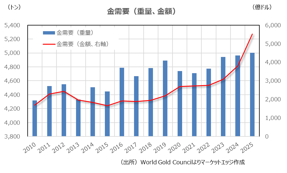 … … …(記事全文2,880文字)<2025年の金需要は5,000トン台到達>