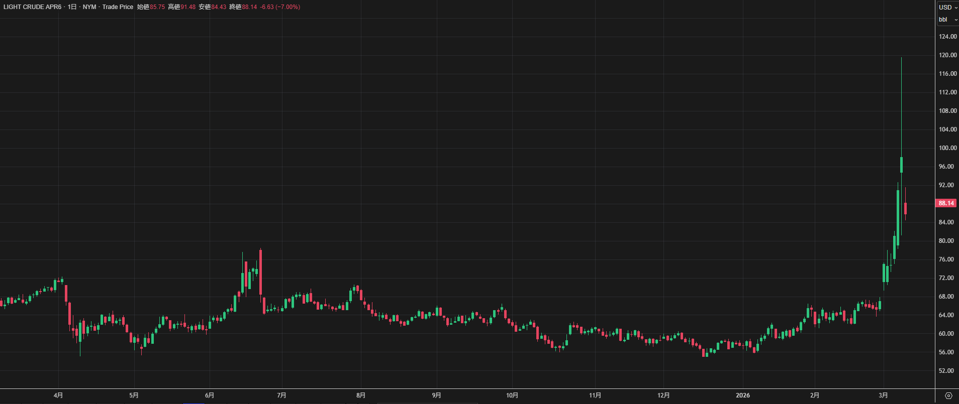 【NYNEX原油先物相場(日足)】