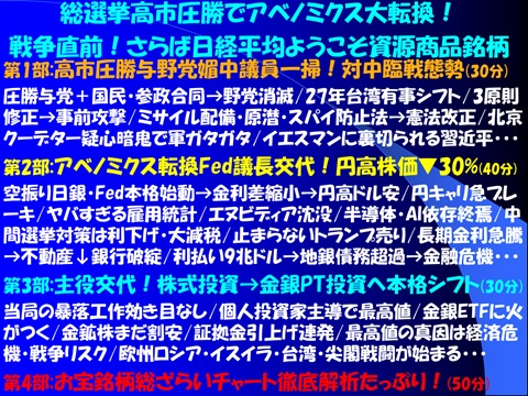 総選挙直後、高市圧勝か?敗北か?中国クーデターは? Fed議長決定で市場は大混乱・大変化・・・世界はパラダイム転換必至です。