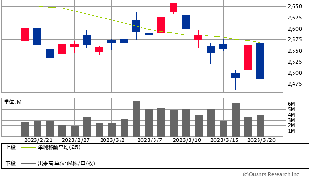 ウェブで読む(推奨):https://foomii.com/00241/20230321231940106956 //////////////////////////////////////////////////////////////// 小資本で始める株式投資 https://foomii.com/00241 //////////////////////////////////////////////////////////////// 皆様こんばんは。 3/20(月)分の売買報告です。 B口座(3/20) 現金残高 67909円(+8649円) 株式評価 64口x13545円=866880円 合計評価 934789円(-14071円) 反落 本日(3/20)のB口座は日経レバを繋ぎ売りで1回転しました。 A口座(3/20) 現金残高 2290490円、+2121円 453勝9敗7分、3連勝 本日(3/20)は負けトレードが0回。(日経レバ買いで1回転)でした。 通算の負けトレードは89敗のままです。 スイング退職金PF(3/20) 退職金PF総評価額1399855円、-39355円(-2.73%) 本日(3/20)の退職金PFは反落となりました。 今日(3/20)の日経は、388.12円安の下伺い陰線でした。個別銘柄では下伺い陰線・抱きの陰線を示す銘柄が増えました。抱きの陰線について取り上げました。 のんきの母 追記(相場メモその314)・・・抱きの陰線(酒田五法)日本航空(9201)のチャートです。抱きの陰線です。月曜日に抱きの陰線を示した銘柄は監視42銘柄中で5銘柄もありました。折角先週金曜日に立ち直りの気配を示したのですが、その反発の兆しを示した途端に、抱きの陰線が出現するのですから、いかに相場の地合いが悪いかがわかりますよね。 日本航空は、東証残も買い残が非常に多く、取り組み妙味はありません。買い残の多さが将来の売り圧力に繋がりますので、どうしても相場的には弱い展開が想起され、弱気スタンスとなります・・・それくらいの慎重さで丁度よいのが今の相場でしょう。 参考になれば幸いです。 //////////////////////////////////////////////////////////////// 本ウェブマガジンに対するご意見、ご感想は、このメールアドレス宛に返信をお願いいたします。 //////////////////////////////////////////////////////////////// 配信記事は、マイページから閲覧、再送することができます。ご活用ください。 マイページ:https://foomii.com/mypage/ //////////////////////////////////////////////////////////////// 【ディスクレーマー】 本内容は法律上の著作物であり、各国の著作権法その他の法律によって保護されています。 本著作物を無断で使用すること(複写、複製、転載、再販売など)は法律上禁じられており、刑事上・民事上の責任を負うことになります。 本著作物の内容は、著作者自身によって、書籍、論文等に再利用される可能性があります。 本コンテンツの転載を発見した場合には、下記通報窓口までご連絡をお願いします。 お問い合わせ先:support@foomii.co.jp //////////////////////////////////////////////////////////////// ■ ウェブマガジンの購読や課金に関するお問い合わせはこちら info@foomii.com ■ 配信停止はこちらから:https://foomii.com/mypage/ ////////////////////////////////////////////////////////////////