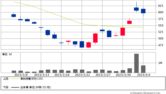 ウェブで読む(推奨):https://foomii.com/00241/20230404235305107532 //////////////////////////////////////////////////////////////// 小資本で始める株式投資 https://foomii.com/00241 //////////////////////////////////////////////////////////////// 皆様こんばんは。 4/4(火)の売買報告です。 B口座(4/4) 現金残高 79073円(+768円) 株式評価 64口x15175円=971200円 合計評価 1050273円(+6528円) 7連騰 本日のB口座は日経レバを買いで1回転しました。 A口座(4/4) 現金残高 2322228円、+4218円 462勝9敗8分、5連勝 本日は負けトレードが0回。(日経レバ買いで1回転)でした。 通算の負けトレードは89敗のままです。 スイング退職金PF(4/4) 退職金PF総評価額1453001円、-1930円(-0.13%) 本日の退職金PFは5日振り反落となりました。 今日の日経は、55.82円高の上伺い陽線でした。個別銘柄では高値波乱を思わせる銘柄が多くなりましたが、一方でやけに強い形を示す銘柄群もありました。高値波乱の2連陰線を相場メモで取り上げました。 のんきの母 追記(相場メモその324)・・・2連陰線(高値波乱型)高値波乱型の二羽烏となったマイポックス(5381)のチャートです。日経平均の全体相場が3/10に出現した1番窓を埋めに行く相場ですのでバネが必要になります。ということで個別株では日経が高かったにも関わらず、2連陰線を示す銘柄が多くなりました。ここは二羽烏といえども、超弱気にならずにしっかり相場の流れに付いていきたいと思います。 参考になれば幸いです。 //////////////////////////////////////////////////////////////// 本ウェブマガジンに対するご意見、ご感想は、このメールアドレス宛に返信をお願いいたします。 //////////////////////////////////////////////////////////////// 配信記事は、マイページから閲覧、再送することができます。ご活用ください。 マイページ:https://foomii.com/mypage/ //////////////////////////////////////////////////////////////// 【ディスクレーマー】 本内容は法律上の著作物であり、各国の著作権法その他の法律によって保護されています。 本著作物を無断で使用すること(複写、複製、転載、再販売など)は法律上禁じられており、刑事上・民事上の責任を負うことになります。 本著作物の内容は、著作者自身によって、書籍、論文等に再利用される可能性があります。 本コンテンツの転載を発見した場合には、下記通報窓口までご連絡をお願いします。 お問い合わせ先:support@foomii.co.jp //////////////////////////////////////////////////////////////// ■ ウェブマガジンの購読や課金に関するお問い合わせはこちら info@foomii.com ■ 配信停止はこちらから:https://foomii.com/mypage/ ////////////////////////////////////////////////////////////////