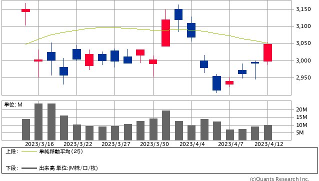 ウェブで読む(推奨):https://foomii.com/00241/20230412233800107860 //////////////////////////////////////////////////////////////// 小資本で始める株式投資 https://foomii.com/00241 //////////////////////////////////////////////////////////////// 皆様こんばんは。 4/12(水)の売買報告です。 B口座(4/12) 現金残高 96620円(±0円) 株式評価 64口x14965円=957760円 合計評価 1054380円(+11200円) 4連騰 本日のB口座は売買ありません。 A口座(4/12) 現金残高 2332793円、±0円 467勝9敗9分、引き分け(10連勝で止まりました) 本日は負けトレードが0回。(日経レバ買いで0回転)でした。 通算の負けトレードは89敗のままです。 SQを控えて慎重に14750円で買い待ちしましたので入れず。負けるよりはよしという感覚でした。 スイング退職金PF(4/12) 退職金PF総評価額1461483円、+8940円(+0.62%) 本日の退職金PFは2連騰となりました。 今日の日経は、159.33円高の2連陽線となりSQを控えた局面を加味して考えると極めて強い展開だと思いました。ということで個別銘柄は日本を代表する企業である日本製鉄(5401)を取り上げました。 のんきの母 追記(相場メモその330)・・・上伺い陽線力強い上伺い陽線となった日本製鉄(5401)のチャートです。今週はミニSQを控えているので動きづらい展開と見ていましたが、本日の動きは予想以上に強い展開で驚きました。それくらい業界にフォローの風が吹き始めたのかもしれないと感じました。 予断は禁物ですが期待して見守りたいと思います。信用の取り組みは買い残も少ないので荷もたれ感はありません。これからの売り残の増加に注目していきたいと思います。 ミニSQを超えた辺りから本格相場に戻るとみていますがどうでしょうか? 参考になれば嬉しいです。 //////////////////////////////////////////////////////////////// 本ウェブマガジンに対するご意見、ご感想は、このメールアドレス宛に返信をお願いいたします。 //////////////////////////////////////////////////////////////// 配信記事は、マイページから閲覧、再送することができます。ご活用ください。 マイページ:https://foomii.com/mypage/ //////////////////////////////////////////////////////////////// 【ディスクレーマー】 本内容は法律上の著作物であり、各国の著作権法その他の法律によって保護されています。 本著作物を無断で使用すること(複写、複製、転載、再販売など)は法律上禁じられており、刑事上・民事上の責任を負うことになります。 本著作物の内容は、著作者自身によって、書籍、論文等に再利用される可能性があります。 本コンテンツの転載を発見した場合には、下記通報窓口までご連絡をお願いします。 お問い合わせ先:support@foomii.co.jp //////////////////////////////////////////////////////////////// ■ ウェブマガジンの購読や課金に関するお問い合わせはこちら info@foomii.com ■ 配信停止はこちらから:https://foomii.com/mypage/ ////////////////////////////////////////////////////////////////