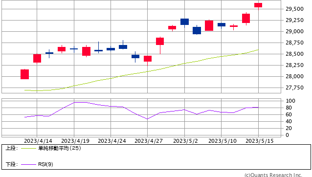 ウェブで読む(推奨):https://foomii.com/00241/20230515232810109101 //////////////////////////////////////////////////////////////// 小資本で始める株式投資 https://foomii.com/00241 //////////////////////////////////////////////////////////////// 皆様こんばんは。 5/15(月)の売買報告です。 B口座(5/15) 現金残高 112812円(+5566円) 株式評価 64口x16610円=1063400円 合計評価 1175812円(+20926円) 2連騰 本日のB口座は日経レバを繋ぎ売りで1回転しました。 A口座(5/15) 現金残高 2749975円、+4642円 484勝10敗11分、3連勝 本日は負けトレードが0回。(日経レバを買いで2回転)でした。 通算の負けトレードは90敗のままでした。 スイング退職金PF(5/15) 退職金PF総評価額1401526円、-1730円(-0.12%) 本日の退職金PFは反落となりました。 今日の日経は、238.04円高の3連陽線となりました。一部踏み上げも入った模様です。ということで本日は日経について書きました。 のんきの母 追記(相場メモその348)・・・3連陽線日経平均のチャートです。窓開けの3連陽線となりました。どうやら少しですが、踏み上げが入ったようです。 日経レバの速報値を見ましたが、今日は新規信用買いが大量に入り取り組みは悪化しましたので明日の日経は少し波乱含みの動きとなると見ています。細心の注意を払って明日の日経相場に向かいたいと思います。 参考になれば幸いです。 //////////////////////////////////////////////////////////////// 本ウェブマガジンに対するご意見、ご感想は、このメールアドレス宛に返信をお願いいたします。 //////////////////////////////////////////////////////////////// 配信記事は、マイページから閲覧、再送することができます。ご活用ください。 マイページ:https://foomii.com/mypage/ //////////////////////////////////////////////////////////////// 【ディスクレーマー】 本内容は法律上の著作物であり、各国の著作権法その他の法律によって保護されています。 本著作物を無断で使用すること(複写、複製、転載、再販売など)は法律上禁じられており、刑事上・民事上の責任を負うことになります。 本著作物の内容は、著作者自身によって、書籍、論文等に再利用される可能性があります。 本コンテンツの転載を発見した場合には、下記通報窓口までご連絡をお願いします。 お問い合わせ先:support@foomii.co.jp //////////////////////////////////////////////////////////////// ■ ウェブマガジンの購読や課金に関するお問い合わせはこちら info@foomii.com ■ 配信停止はこちらから:https://foomii.com/mypage/ ////////////////////////////////////////////////////////////////