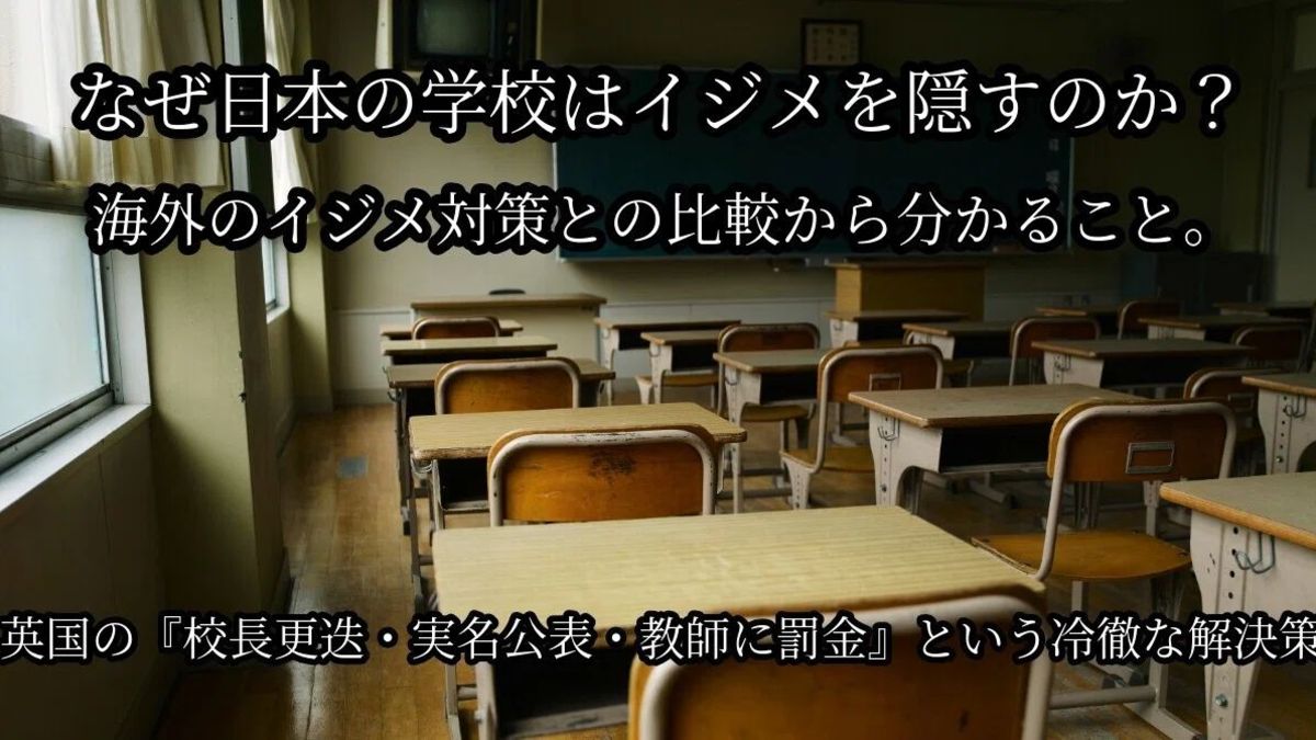 … … …(記事全文3,832文字)なぜ日本の学校はイジメを隠すのか?海外のイジメ対策との比較から分かること。 英国の『校長更迭・実名公表・教師に罰金』という冷徹な解決策