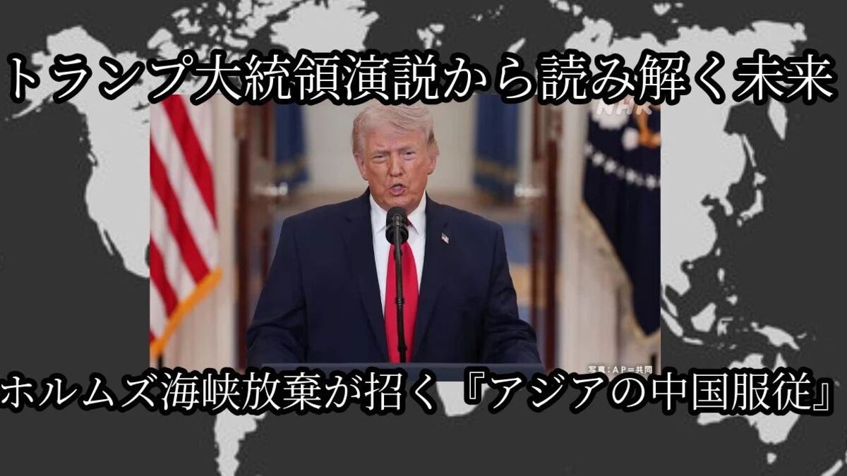 今回の演説の中の、この3点は別の角度から見てみると、「アメリカはホルムズ解放に失敗し今後も関与しない」と言っている事と同じことだし、現に「今後も関与しない」とは明確に言っている。