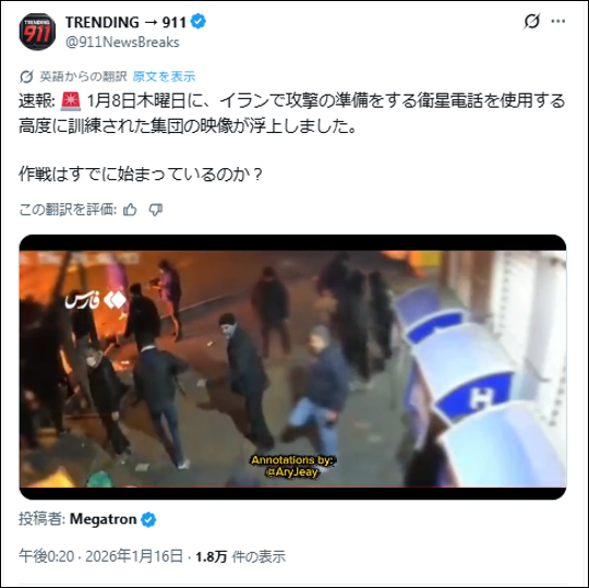 こうした「平和的なデモに暴徒を紛れ込ませる」手法は、2018年のフランス(黄色いベスト運動)、2019年の香港、2020年の米国のBLM、2023年のフランス暴動でも繰り返されてきた。当時の主役が極左集団「アンティファ」や「ブラック・ブロック」であったように、今回のイランでも同様の攪乱戦術が用いられた。
