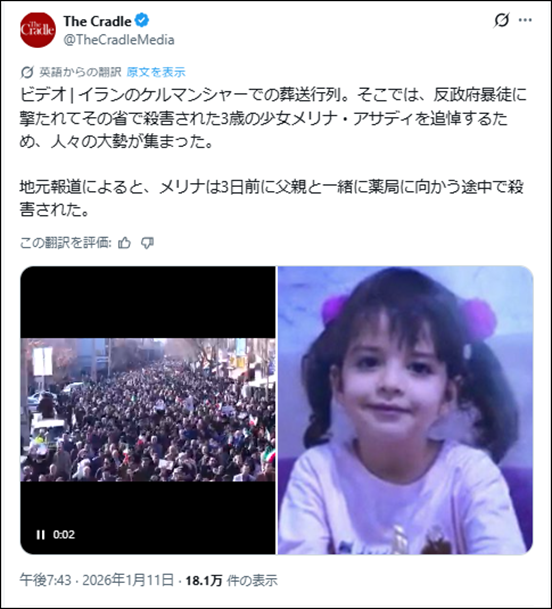 テヘラン大学のモハマド・マランディ教授は、この混乱で300人以上のイラン人が殺害されたと指摘している。当局がインターネットを遮断したのは、国民の声を封じるためではない。CIAやモサドからテロリストへの通信指示ルートを断ち切るための不可欠な防衛措置であった。事実、遮断後に混乱は急速に鎮静化へ向かった。