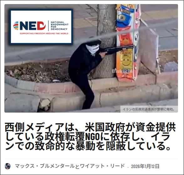 … … …(記事全文3,052文字)通常、「カラー革命」と呼ばれる非欧米諸国の政権転覆工作は隠密裏に行われるものだが、今回のイランにおける混乱では、米国とイスラエルはその意図を隠すどころか、むしろ世界に見せつけるかのような露骨な動きを見せた。