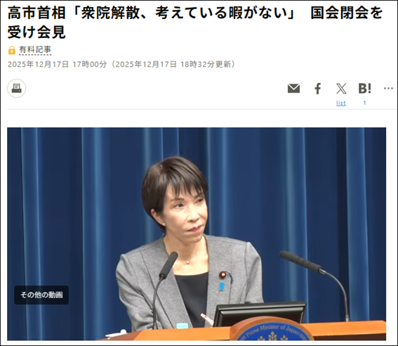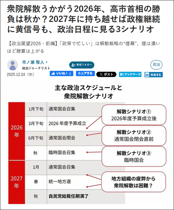 <2025年12月24日 JBプレス 「煙は濃いほど勝算は上がる」とする記事も「冒頭解散」は読めなかった?>