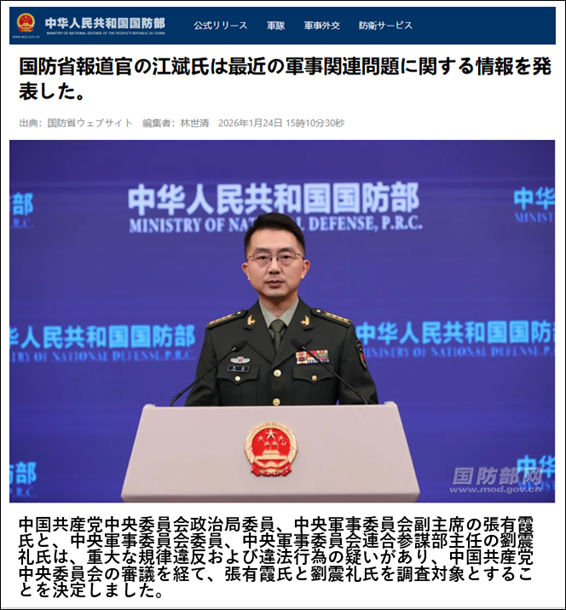 <2026年1月24日 中華人民共和国国防部>