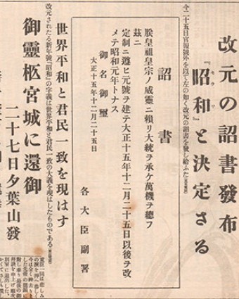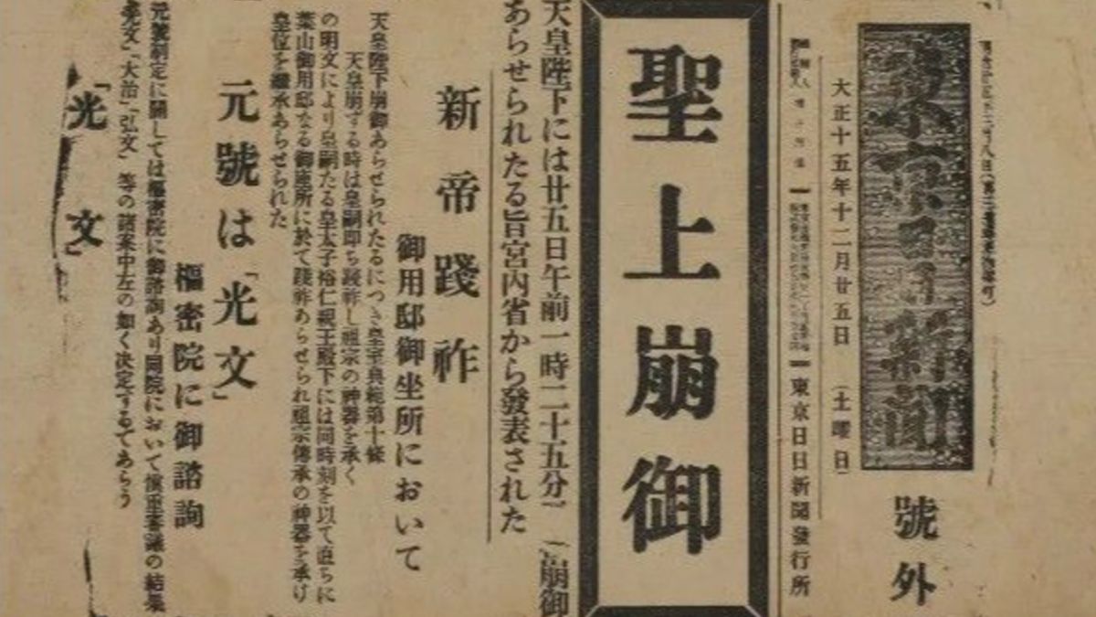 大正15年(1926年)12月25日午前1時25分、体調悪化で公務から退いておられた大正天皇がご逝去される。その日の早朝午前4時に東京日日新聞(現在の毎日新聞)が