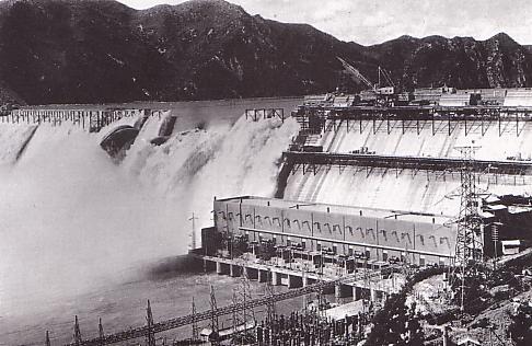 日本統治下で平安北道朔州郡に東洋一の出力70万kWで計画され、昭和12年に着工、昭和16年に完成した水豊ダムは現在も北朝鮮が使用して国内に電力を供給しています。