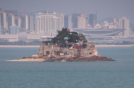 小金門島の前に見える小島は獅嶼島で台湾軍が駐屯しています。遠景は中国領 厦門です。